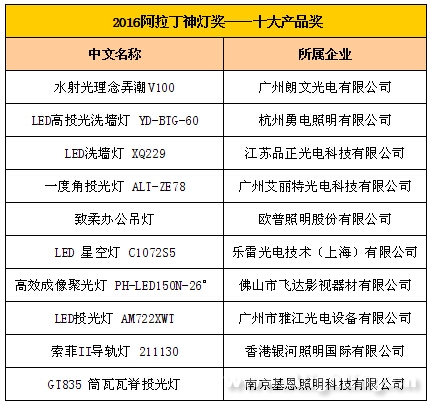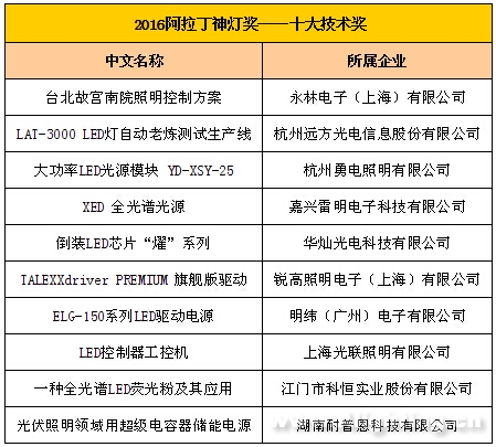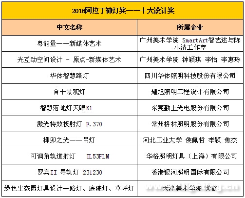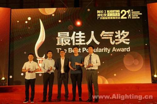 此次增設的阿拉丁神燈獎四大類“最佳人氣獎”,也在晚宴現場頒發榮譽獎杯及證書。評選結果在5月31日下午17點微信投票通道關閉時已出爐,獲獎項目分別是:產品類——深圳市棟梁光電科技有限公司超長優耐低壓燈帶(優耐燈),技術類——歐普照明股份有限公司松果大功率球泡,工程類——湖南耐普恩科技有限公司長韶婁高速公路市政輔道全天候光伏道路照明工程,設計類——齊魯工業大學藝術學院--李騰飛奧運燈飾景觀燈。