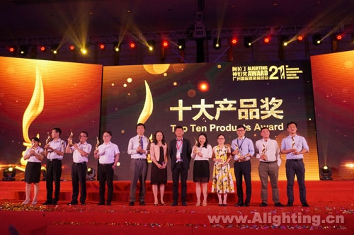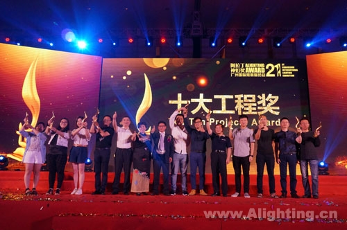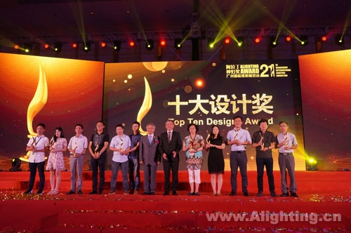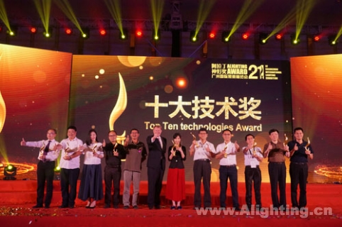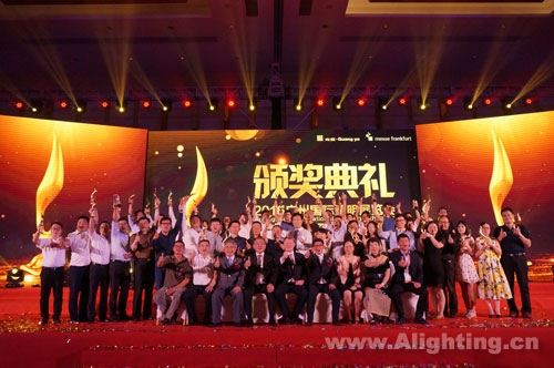 當晚,阿拉丁神燈獎最終獲獎結果的揭曉將此次晚宴熱潮推向最高點。法蘭克福展覽總公司董事會成員鮑思豐先生、廣州光亞法蘭克福展覽有限公司董事、神燈獎組委會主席潘文波先生、法蘭克福展覽(香港)有限公司執行董事杜承華先生、廣州光亞法蘭克福展覽有限公司總經理胡忠順先生等四位主辦方代表,以及北京光景照明設計有限公司首席設計師安小杰、北京豪爾賽照明技術集團有限公司總裁戴寶林、天津市華彩電子科技工程有限公司董事長李樹華、廣州市照明建設管理中心總工程師丘玉蓉、國立臺灣科技大學電機工程系教授蕭弘清等六位終審評委,分別為獲獎單位頒發了獎杯和證書。