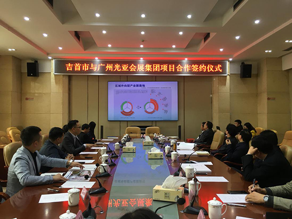 會議期間,雙方還重點對光亞集團在吉首高鐵新城擬投資200億元打造吉首國際博覽城項目進行了深入交流。